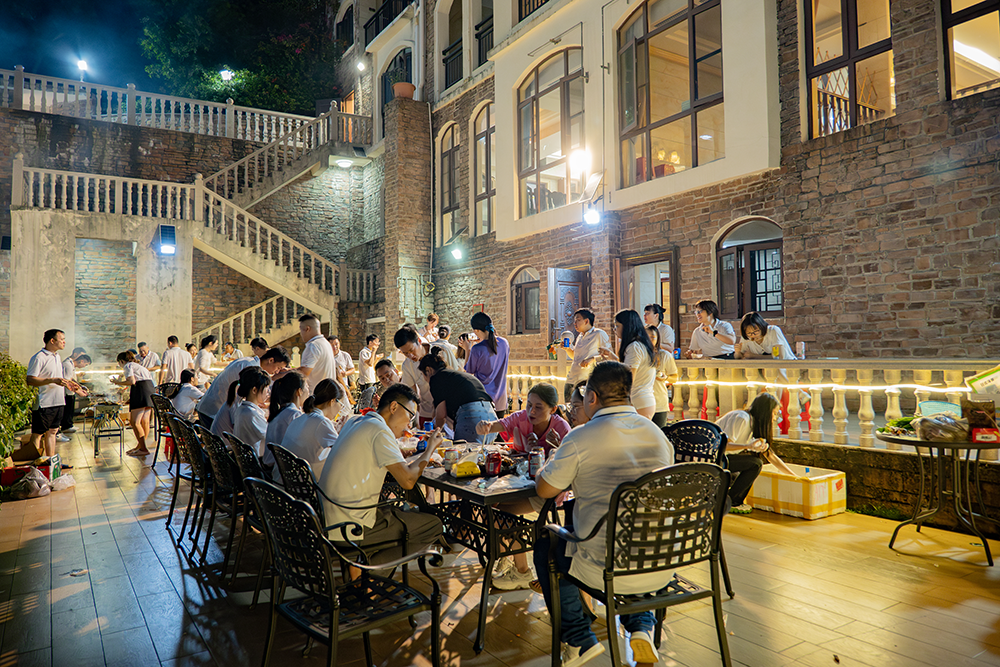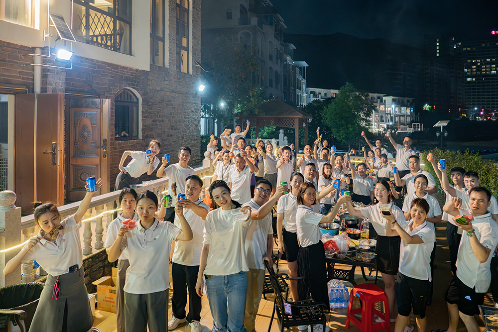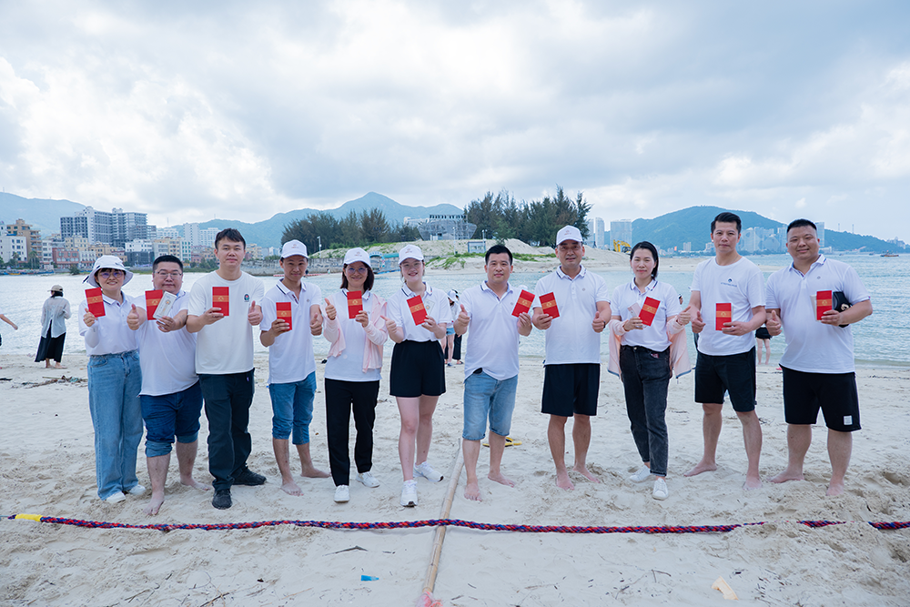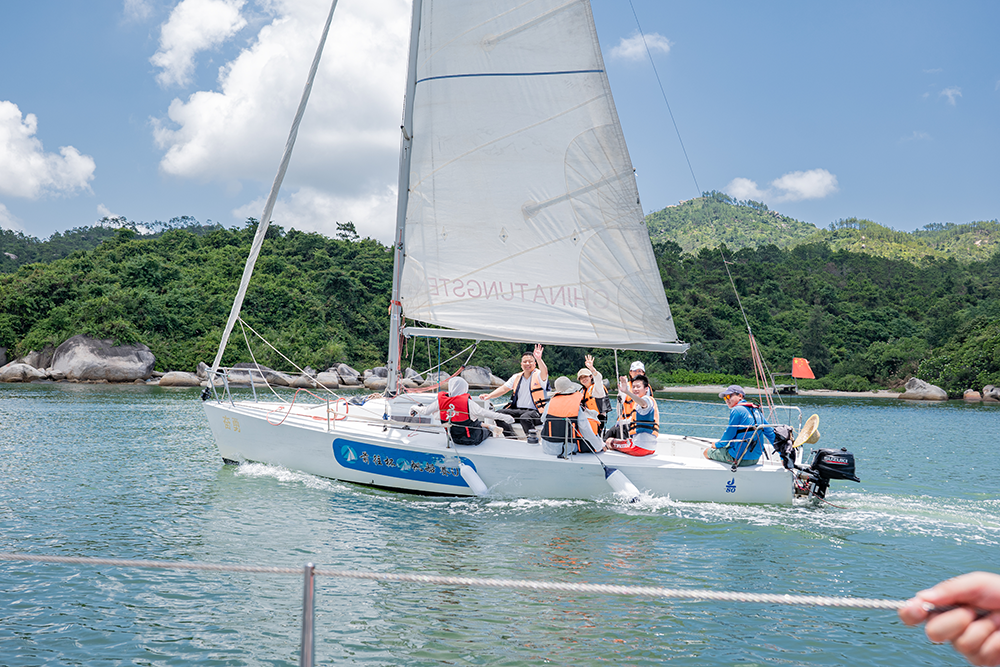 5月26日下午,一辆旅游大巴载着欢声笑语前往惠州巽寮湾,经近3小时车程到达目的地,开始了为期两天一夜的团建之旅。 当晚,在巽寮湾花园别墅进行烧烤轰趴活动。金勺子家人们团结协作,伴着习习的海风,升起独一份的人间烟火,开启不一样的味蕾享受。夜幕逐渐降临,喝酒、吃肉、K歌......他们忘却了昔日烦恼,欢呼、呐喊、嬉闹......共同沉浸在美好的夜晚里。 27日上午,集体享用早餐后,开展团建活动。通过《沙滩拔河》《沙滩龙舟竞赛》等一个个有趣的拓展互动,提高了团结协作的默契,提升了集体荣誉感,让一颗颗滚烫的心连接起来,让金勺子团队更有信念和力量。 27日下午,全体出发前往码头准备坐帆船出海。码头上空蓝天白云,海风阵阵,远眺万里无边,美不胜收,大家纷纷合影留念,记录下心动的时刻。 坐在帆船上观光,又是另一番体验。有的家人们脚踏浪花朵朵,体验速度与激情,有人眺望远方,欣赏蓝天、白云、波澜大海。此时的海面上波光粼粼,与天上的朵朵白云相映生辉,偶尔风声、呐喊声、欢笑声......在耳畔响起,让人心旷神怡、倍感舒适,金勺子的家人们忍不住感慨,真不虚此行。 欢乐时光总是过得尤其快,无论多么不舍,金勺子家人们历经短暂的相聚后又要奔赴战场,但我们会带着满满的回忆、勇气与激情拥抱未来,齐心协力书写新的篇章。