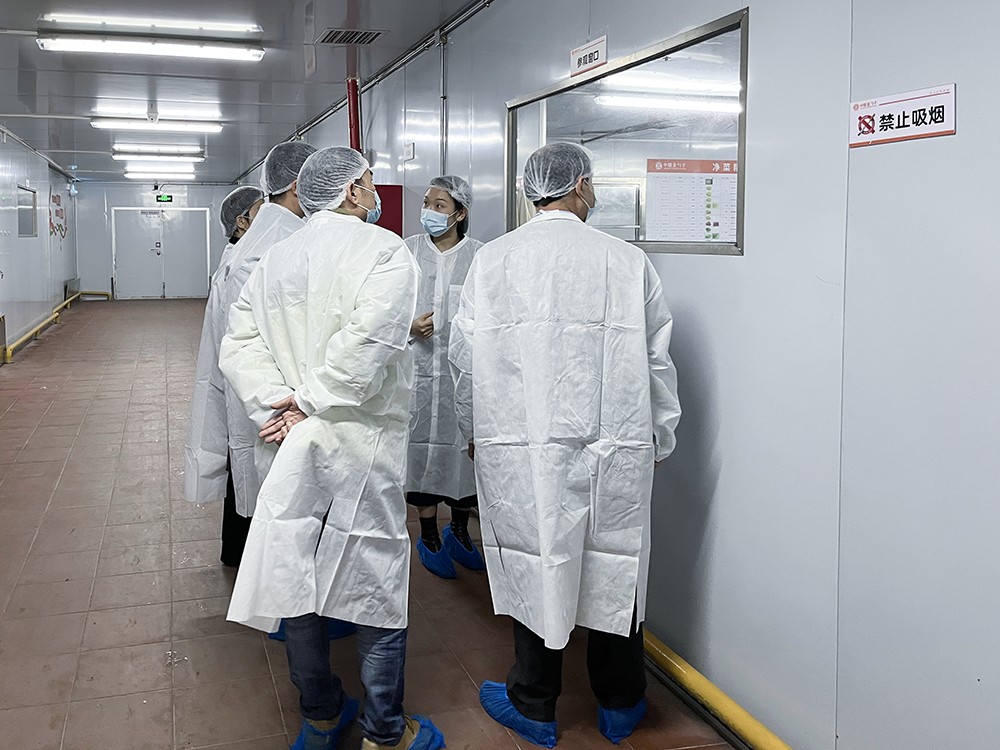 当天,潘书记一行领导走访配送大厅、预制菜生产车间等,了解各项目生产经营情况。