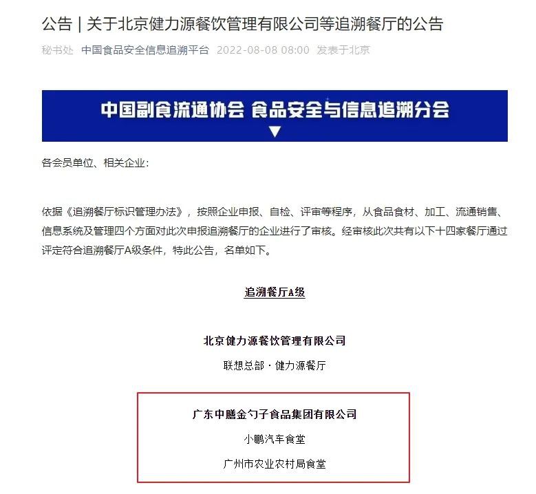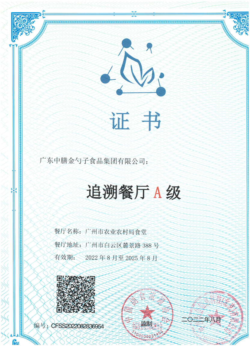 近日,中国食品安全信息追溯平台公布了2022年新一轮“追溯餐厅”评定榜单,广东中膳金勺子食品集团有限公司通过评定符合追溯餐厅A级条件,我司首批追溯餐厅A级“小鹏汽车食堂”、“广州市农业农村局食堂”正式官宣! 追溯餐厅A级 什么是?“追溯餐厅”? 追溯餐厅”是中国副食流通协会食品安全与信息追溯分会根据国家政策指导,依据《餐饮企业食品(食材)流通追管理规范》(T/CFCA0003-2018)、《追溯对象编码规范》(T/CFCA0001-2018)等标准体系,对餐饮企业食品、食材规范性管理的评价服务。 对餐饮企业日常经营餐食业务所用的肉、面、米、酒、食用油、果蔬、奶品、调味品等食品(食材)及原料流通的来源、经手人、数量、凭证、时间等信息进行追溯管理的相关要求,适用于餐饮企业对于食品(食材)流通的过程管理和节点溯源。 “追溯餐厅A/B/C级”对餐饮企业的食品(食材)进行追溯管理,依据追溯评级要求,对餐饮企业的追溯情况分为A、B、C三个等级,A级最高,依次降低。 “追溯餐厅”又有什么作用呢 “追溯餐厅”可帮助餐饮企业完善追溯体系,对采购、库存、食材使用等管理规进行标准化全面升级,降低食品安全风险及界定食品安全责任,以多种形式展示食材的可追溯,增加消费者的信任,向社会传递企业担当,引领行业、企业发展。 一直以来,广东中膳金勺子集团积极响应与落实国家食品安全及追溯政策,提高食品安全保障水平,建立并完善追溯体系,维护消费者食品安全保障,向社会传递餐饮企业担当,引领行业、企业健康发展,做到标准采集记录产品生产、流通、消费等环节信息,实现来源可查、去向可追、责任可究,强化全过程质量安全管理与风险控制的有效措施。 由团餐谋发起了2022中国团餐行业创新力云峰会“突围2022 激活创新力量”,为期10期团餐认知升级月系列云直播落下了帷幕。此次云峰会汇聚了头部团餐企业业界精英,聚焦7大团餐热门板块,涉及中央厨房建设、组织管理、市场开拓、供应链、信息化建设、社区团餐、赛事团餐等热点话题,深入剖析及专业解读团餐创新发展,助力团餐人从多角度突围和蜕变。 在餐认知升级月系列云直播最后一期里,诚邀多名餐饮头部企业代表展开“团餐创新力”圆桌对话,尖峰思想碰撞对话直击经营困惑,同期发布最新团餐行业趋势报告,公布“2022中国团餐优秀企业评选榜单”,洞见未来风向,挖掘实力品牌,助力行业奋进。其中在TOP食盛典”2022年度中国团餐优秀企业评选中,广东中膳金勺子集团荣获了“2022年度中国团餐企业TOP100”、“2022年度中国医院团餐企业TOP10”、“2022年度中国团餐供应链服务商TOP30”三项大奖。NO.1