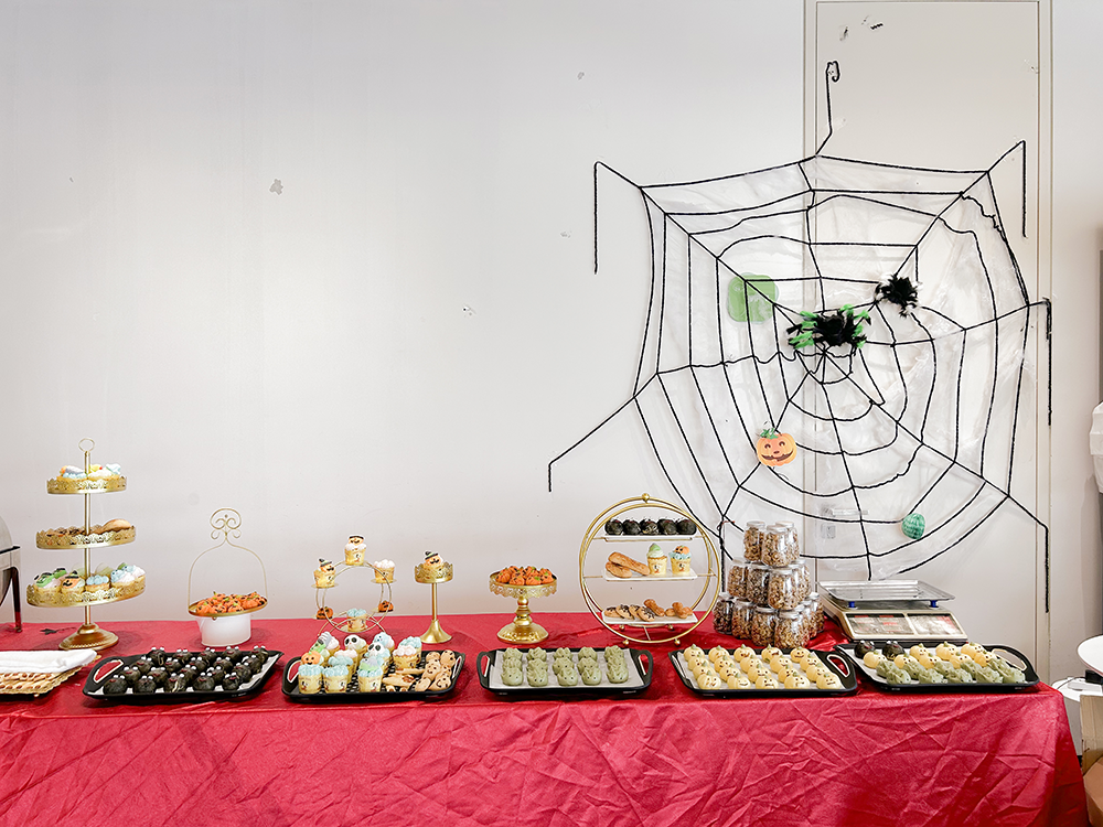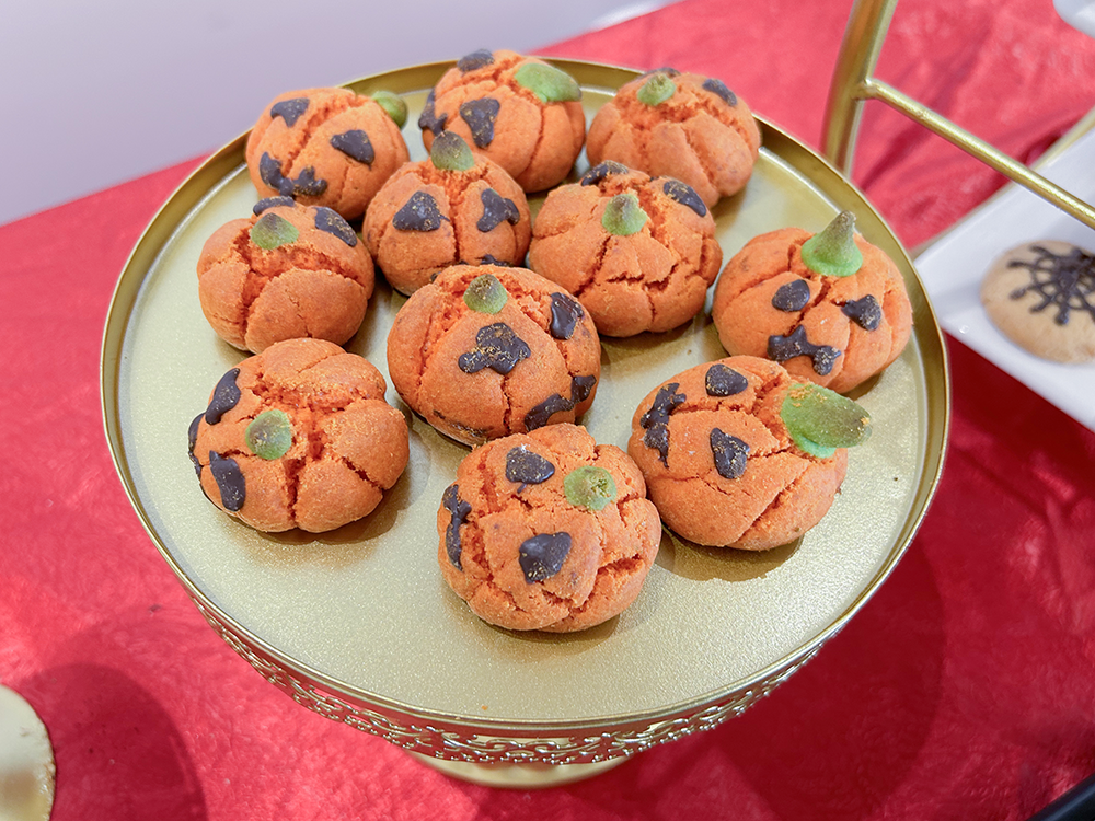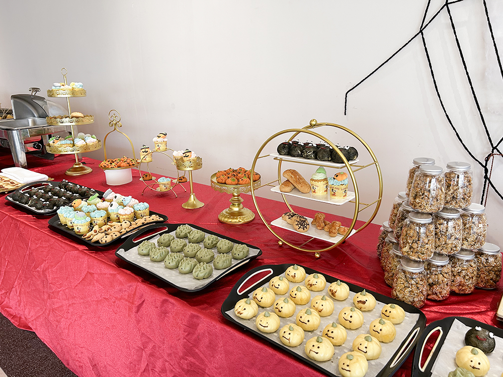 10 月 30 日—11月1日,金勺子餐饮679门店团队精心策划了一场别开生面的万圣节特色供餐活动,利用南瓜、鬼怪、糖果等元素,将餐厅装点成充满神秘与奇幻的万圣节氛围,邀职工一同感受舌尖上的美食魅力!活动期间,金勺子餐饮的厨师团队激发无限的想象力和创造力,推出美味又健康,具有一定的营养价值的万圣节特色点心,让节日的氛围更加浓厚。