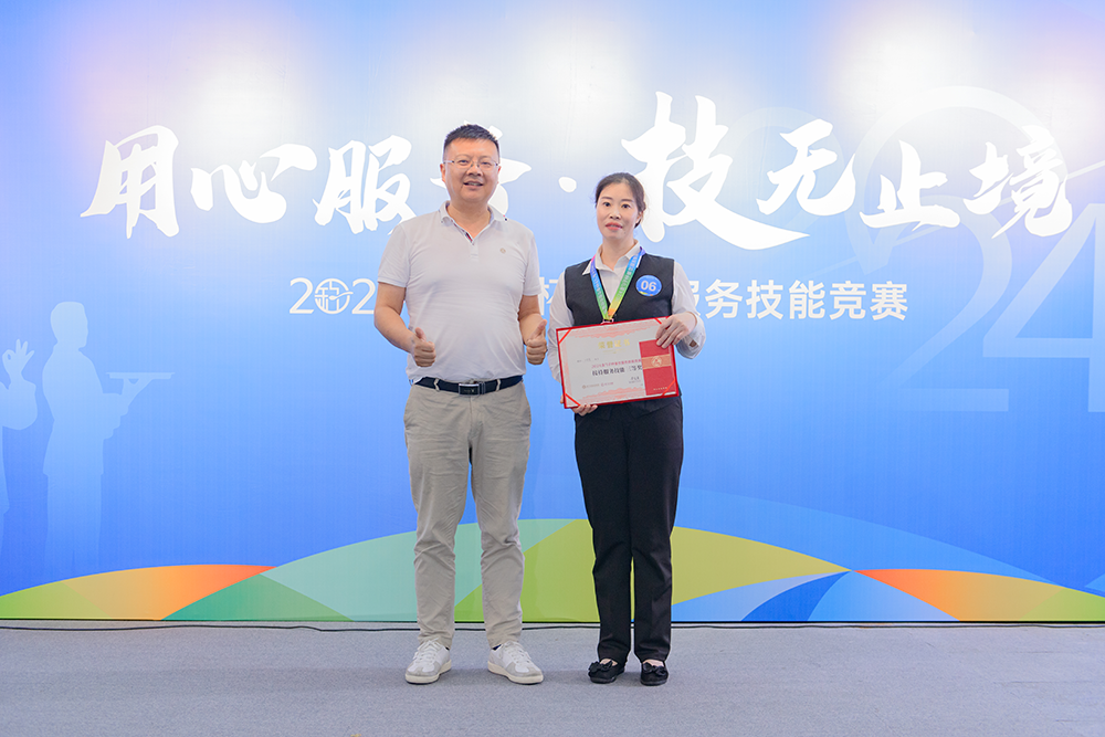 用心服务,技无止境!巅峰对决,各显神通!最后,2024金勺子杯餐饮服务技能竞赛在紧张而激动的颁奖仪式中圆满结束。获奖者们手捧荣耀,脸上洋溢着自信和喜悦。这是对他们的肯定,也是对他们未来的鼓励。