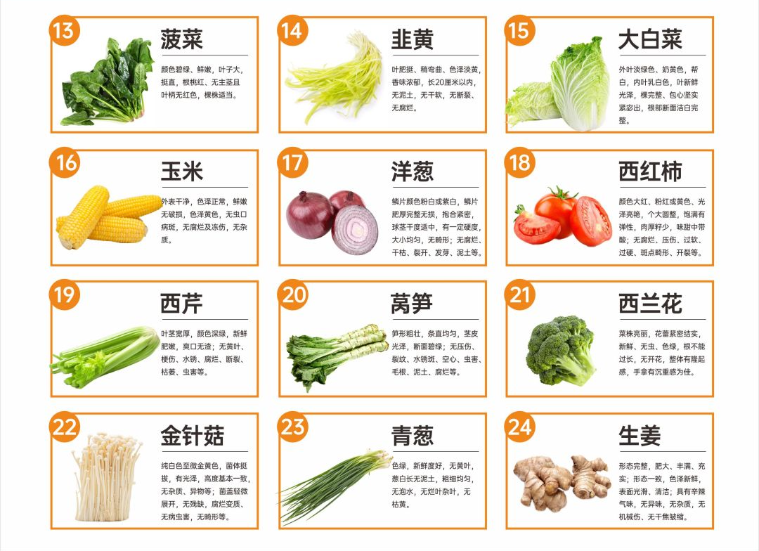 (3)农残检测:蔬菜应符合国家农残检测标准,无超标农残。